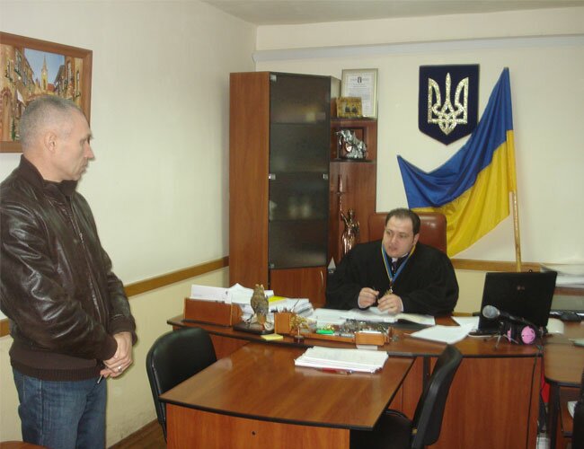 Слева - Андрей Нифонтов, называющий себя предпринимателем. Одновременно - подсудимый по уголовному делу о вымогательстве квартир у жителей Донецка, главарь ОПГ (как считают УБОП и многие бездомные дончане). Справа - судья Киевского райсуда Сергей Шлыков.