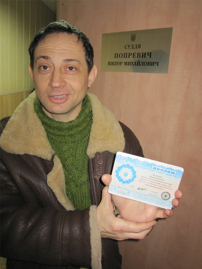 Виталий Омельченко не поленился сходить в Киевский райсуд Донецка, чтобы показать диплом о высшем юридическом образовании судье, который отправил его по этапу. "На лице Виктора Михайловича читалось удивление - еще бы! Я жив-здоров и теперь мы коллеги", - говорит жертва "правосудия"